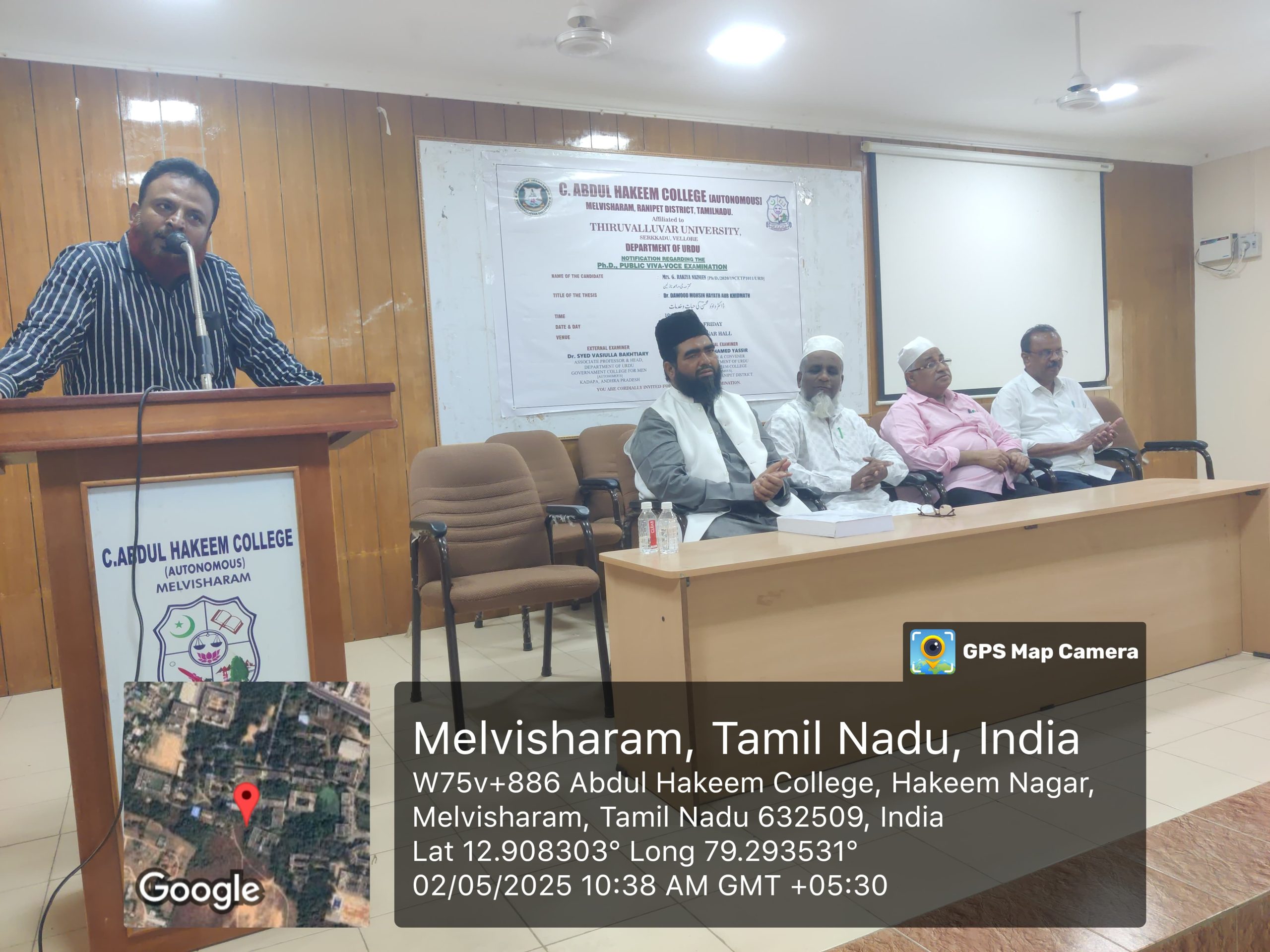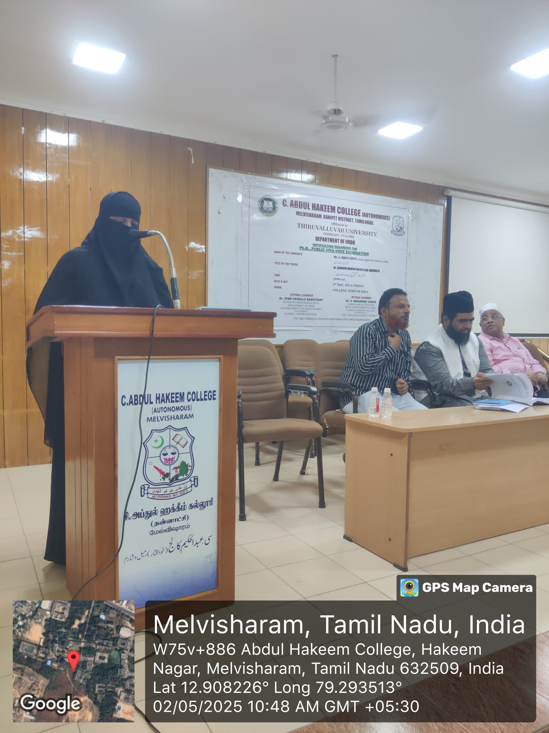 Ph.D. Public Viva-voce Examination of Mrs. G. Rakiya Nazneen under the guidance of Dr. S. Mohammed Yassir Department of Urdu 02.05.2025 Published on May 6, 2025May 6, 2025 by faiz Invitation view / download