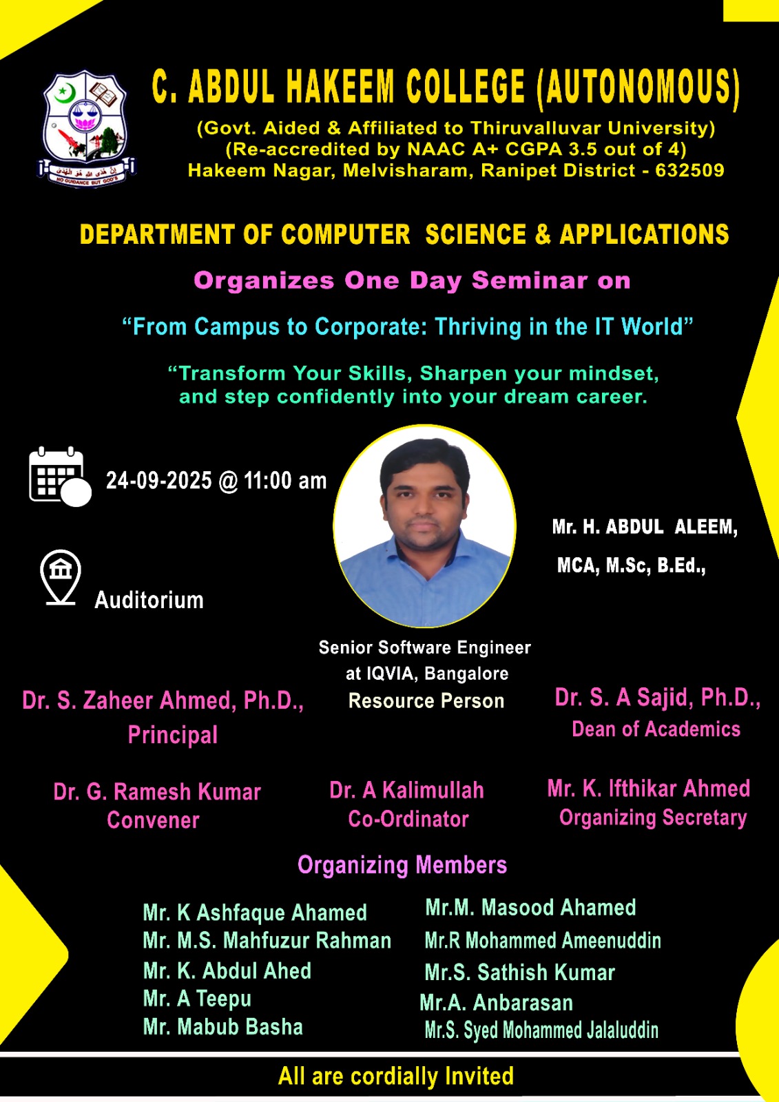 One-Day Seminar on From Campus to Corporate: Thriving in the IT World 24.09.2025 Published on September 24, 2025September 24, 2025 by faiz