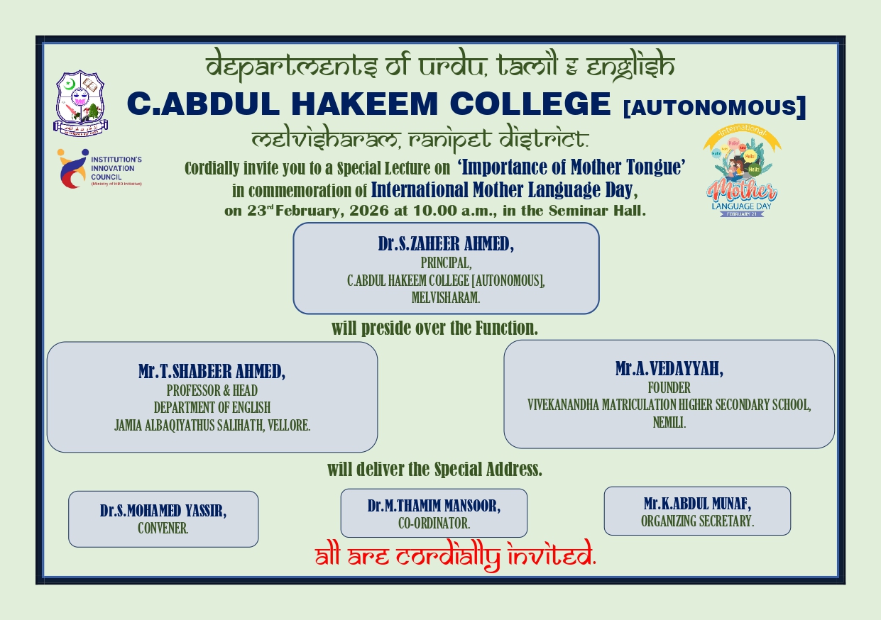 Special Lecture on Importance of Mother Tongue 23.02.2026 Published on February 26, 2026February 26, 2026 by faiz Share this… Buffer Facebook Threads Whatsapp Twitter