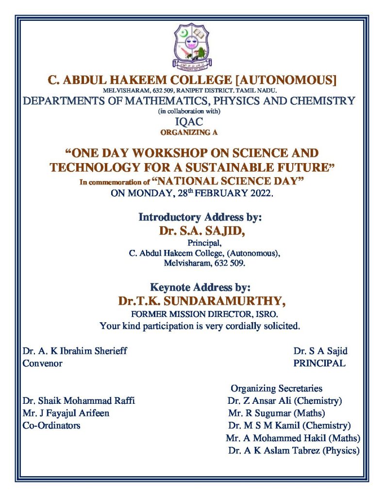 The Department of the Mathematics is one of the oldest departments which maintain a good record of service from its inception in 1967. B.Sc and M.Sc. Mathematics Programmes were started in 1967 and 1980 respectively. The department was elevated into a research department in the year 2005-2006 by offering M.Phil (Full Time & Part Time). Ph.D. (Full Time & Part Time) Programme offered in the year 2012.